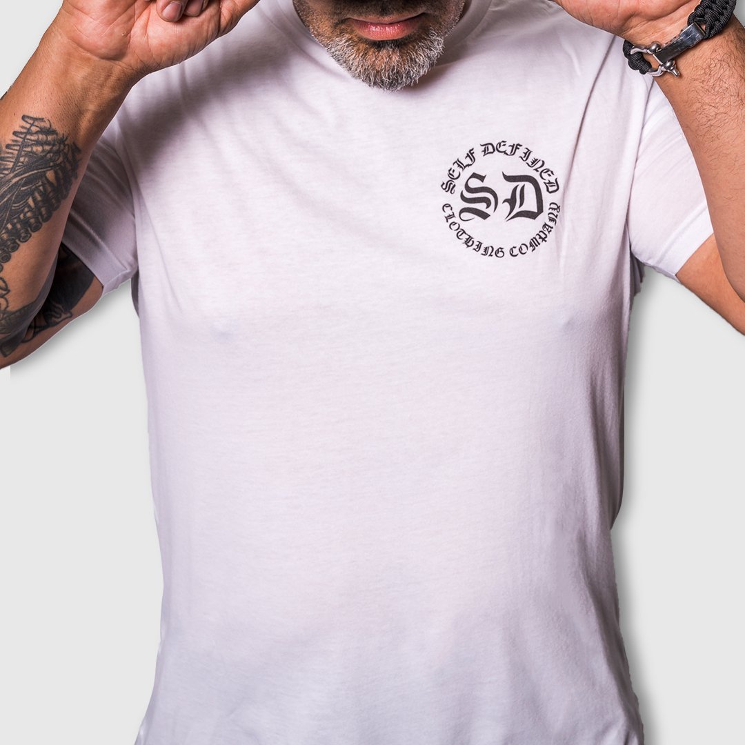 Self Defined Old English Tee – White